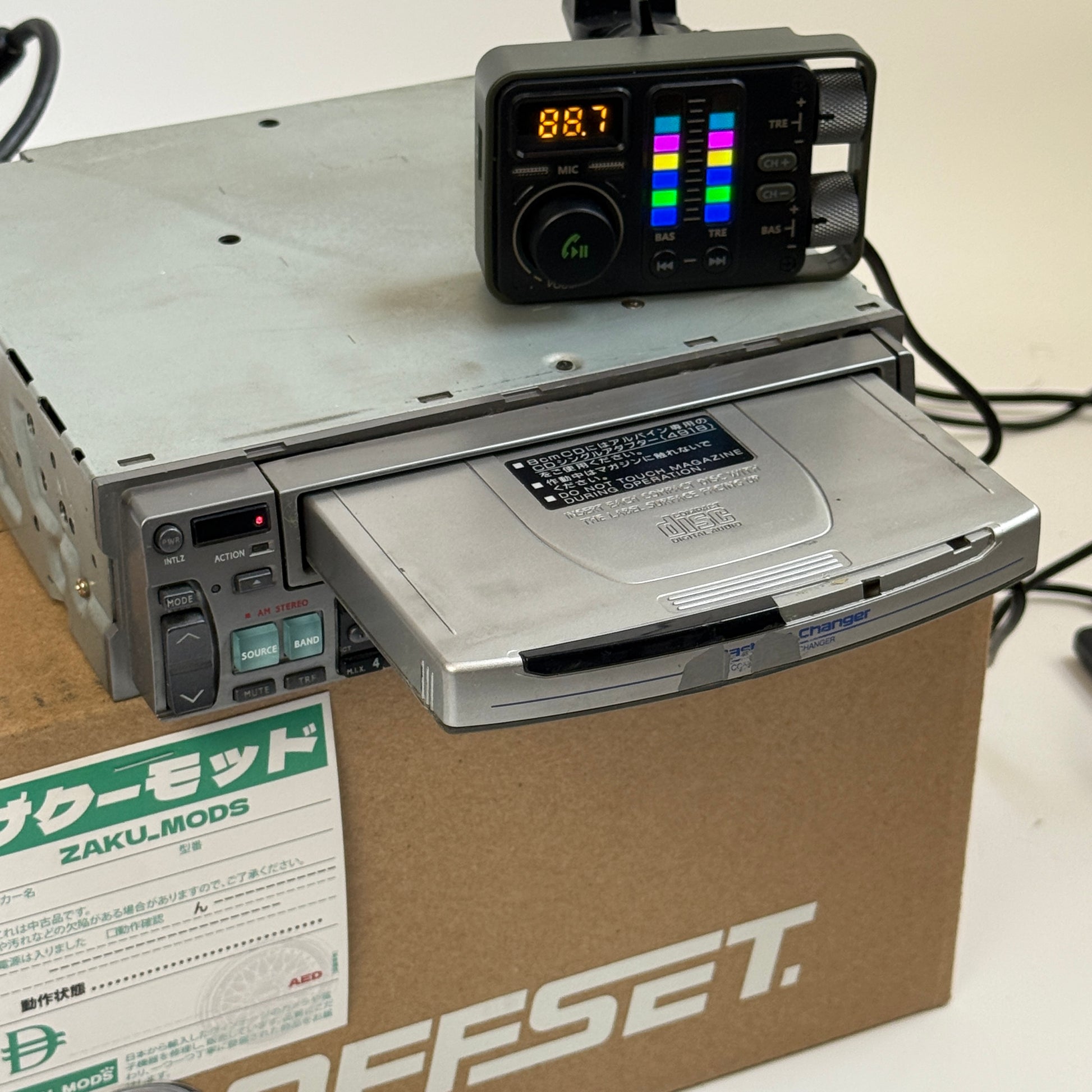 - Comes with a Fm Bluetooth transmitter (as pictured above the radio) which connects to your phone with Bluetooth easily.