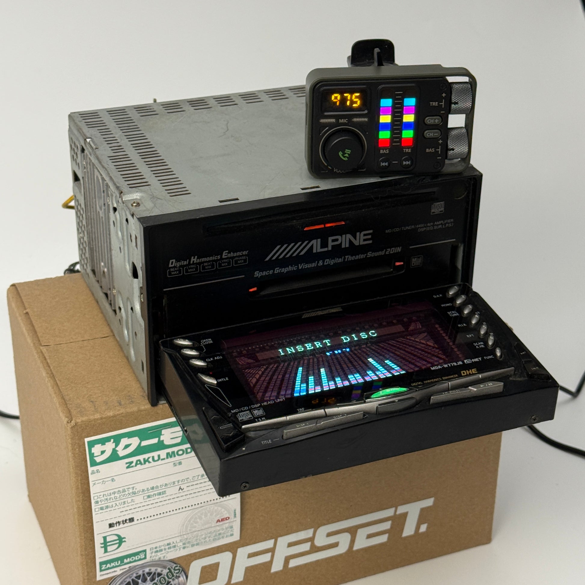 - comes with an FM Bluetooth transmitter to connect to your phone (pictured above the headunit)